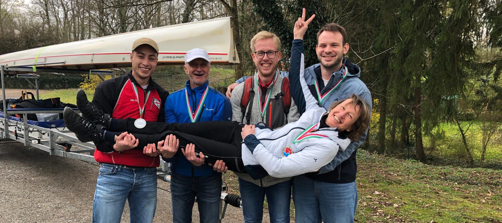 Bei wunderbar frühlingshafter Witterung ging noch ein zweites Lauffener Boot ins Rennen: Der Masters-Mixed-Doppelvierer mit Steuermann in der Altersklasse U70 fuhr in der Besetzung Ulla Wenninger, Daniela Schaaf, Achim Wenninger, Michael Schaaf und Steuermann Martin Weise auf den sehr guten zweiten Platz.